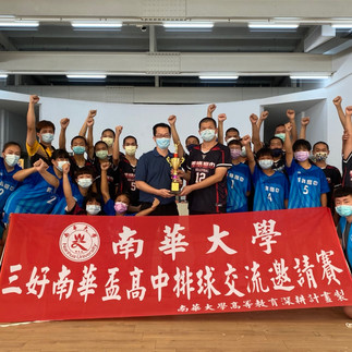 三好南華盃高中排球交流邀請賽於10月16~17日假南華大學正行中心展開,受惠於新冠疫情控制得宜,賽事依計畫時辰進行,東吳高職、華南高商、虎尾高中、義峰高中、長億高中、彰化高商、育德工家七所學校,共計11支男女排隊伍180餘人都順利參賽。賽制為男子組五隊循環,女子組六隊預賽分兩組,採循環賽制,取前二名晉級四強決賽。兩天總共進行20場賽事,各隊拚勁十足,無不卯足全力爭取勝利,展現球隊對於球賽的重視,以及球員對於贏球的渴望;最終男子組東吳高職以四戰全勝戰績獲得第一名,義峰高中以三勝一敗獲得第二,虎尾高中以兩勝兩敗獲得第三;女子組長億高中與虎尾高中在小組賽出線,兩隊實力伯仲之間,冠軍賽精采絕倫,長億高中以強勢的進攻與堅強的防守,讓虎尾高中難以取分,虎尾高中雖力求突破但往往缺乏致命一擊,長億高中技高一籌帶走冠軍,虎尾高中第二名,華南高商獲得第三名。兩天的賽事中各隊球員表現有禮貌有紀律,讓人感受到各高中經營球隊的用心,最後預祝各隊今年的高中排球聯賽都能再創佳績。